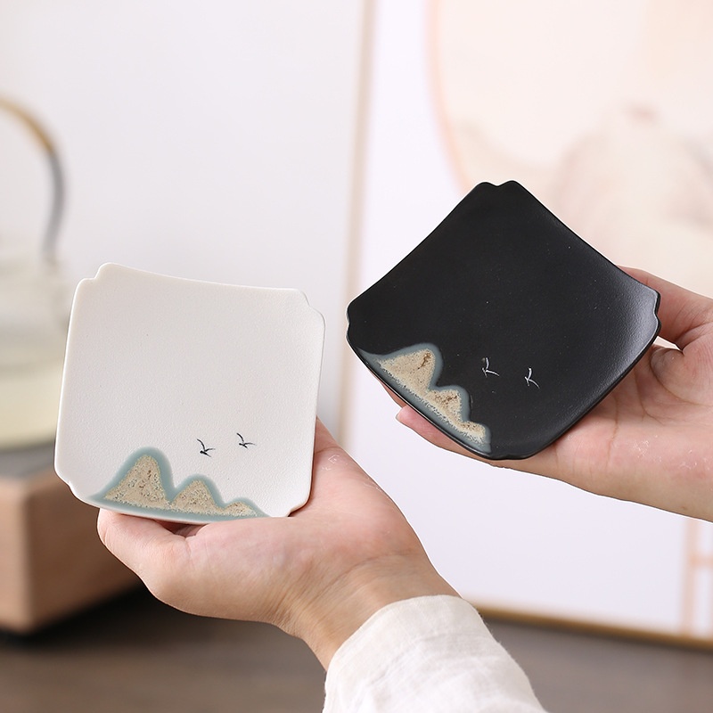 Creative Ceramic Square Mountain Kung Fu Tea Coaster Tea Supplies Tea Ceremony Accessories Chinese Zen Tea Room Cup Holder