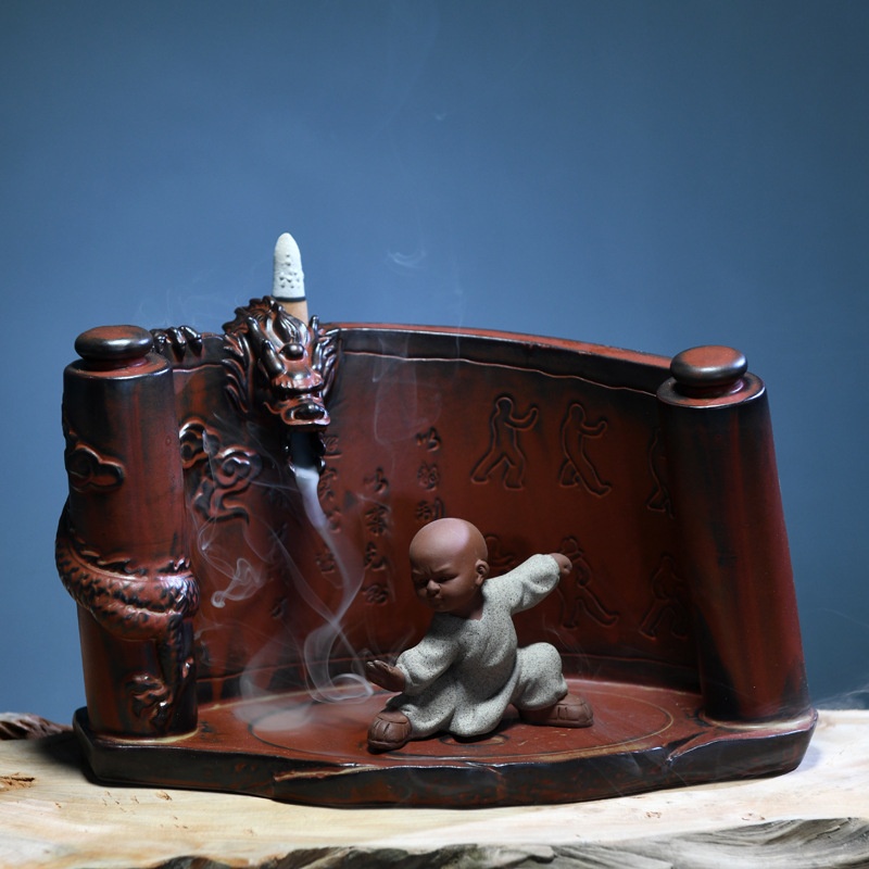 Ceramic Martial Arts Tai Chi Little Monk Handmade Figure Cute Little Monk Home Purification Air Backflow Indoor Incense Burner
