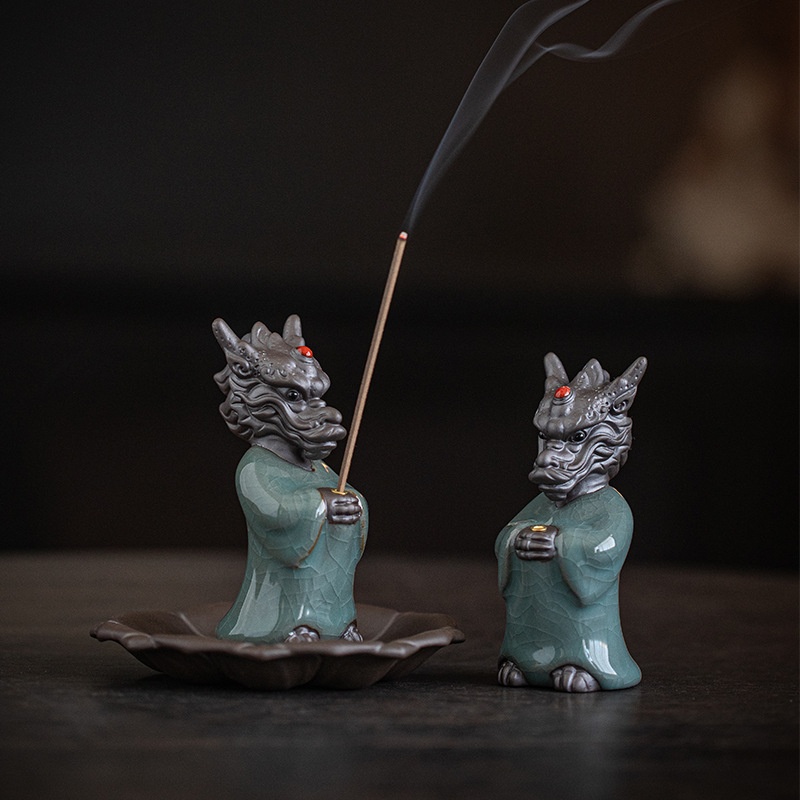 Ing Dragon Line Incense Burner Creative Ceramic Zodiac Little Dragon King Incense Holder Zen Tea Ceremony Desktop Aromatherapy Burner Ornaments