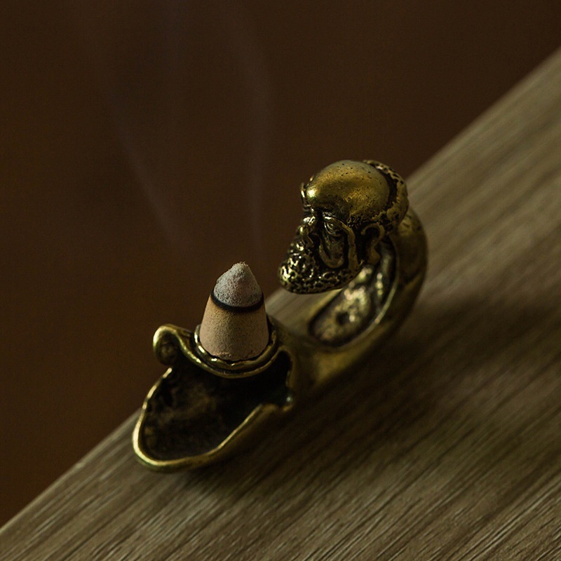 Brass Old Bodhidharma Incense Burner Backflow Incense Ornaments Zen Retro Pure Copper Tea Pet Incense Holder Small Copperware S