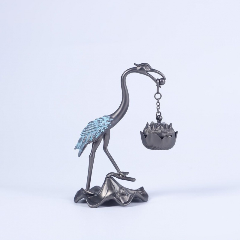 Creative Small Crane Incense Burner Lotus Hanging Furnace Home Decoration Indoor Small Incense Burner Crane Aromatherapy Furnace Zen Tea Ceremony Incense