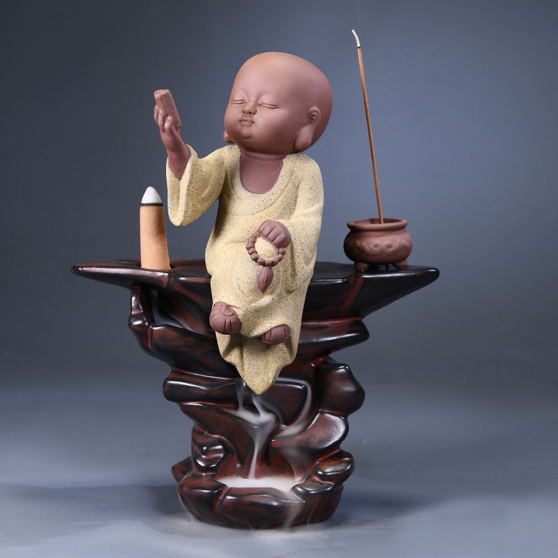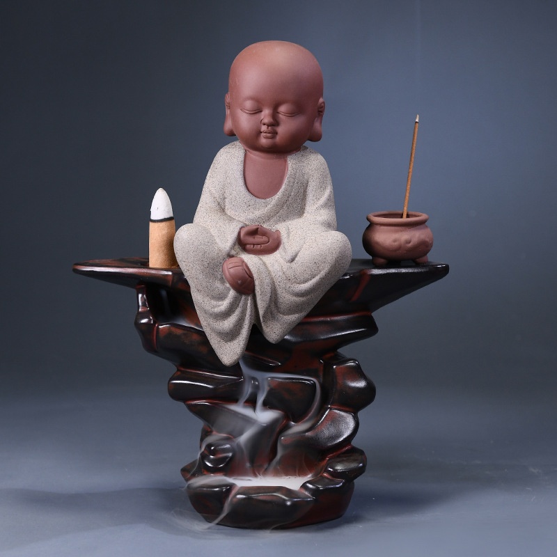 Chinese Zen Cute Little Monk Ceramic Line Incense Burner Home Indoor Creative Small Monk Ornaments Backflow Incense Burner