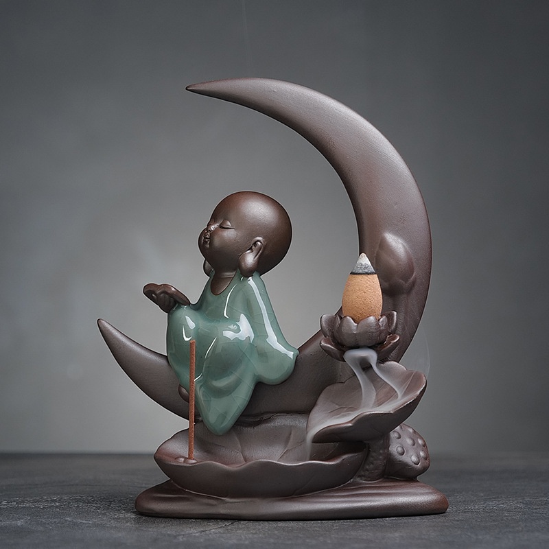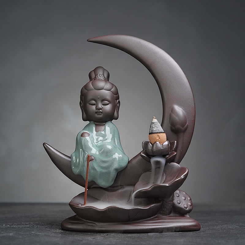 Zen Ceramic Backflow Incense Burner Purple Sand Incense Holder Aromatherapy Burner Creative Home Sandalwood Burner Quiet Moon Incense Decoration