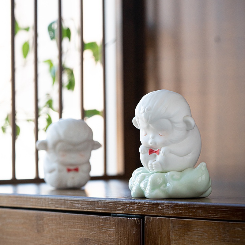Creative Zen Ceramic Monkey Ornaments Small Incense Burner Household Sandalwood Wukong Aromatherapy Indoor Incense Holder Incense Holder Wire Incense Plug