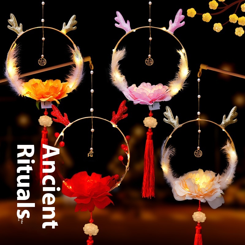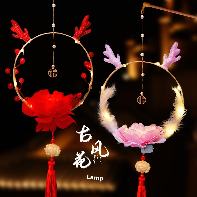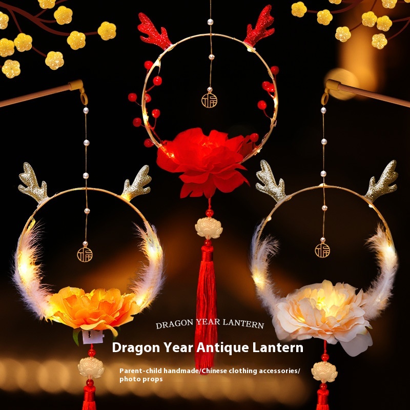 Year Lantern DIYPalace Lantern Glowing Children's Hand-held Snake Year Lantern Creative Cartoon Ancient Style Decoration Dragon Horn Lantern