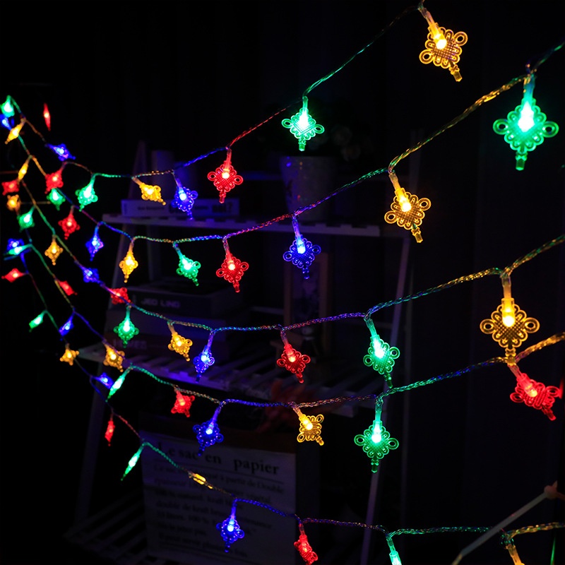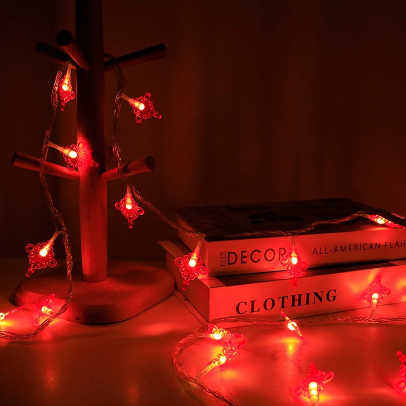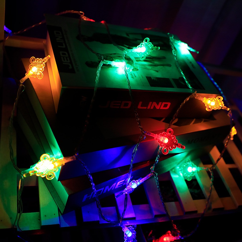 LEDString Lights Year Spring Festival Holiday Lights Red Lanterns Chinese Knot Lucky Character Decorative String Lights USBBattery Box Light String