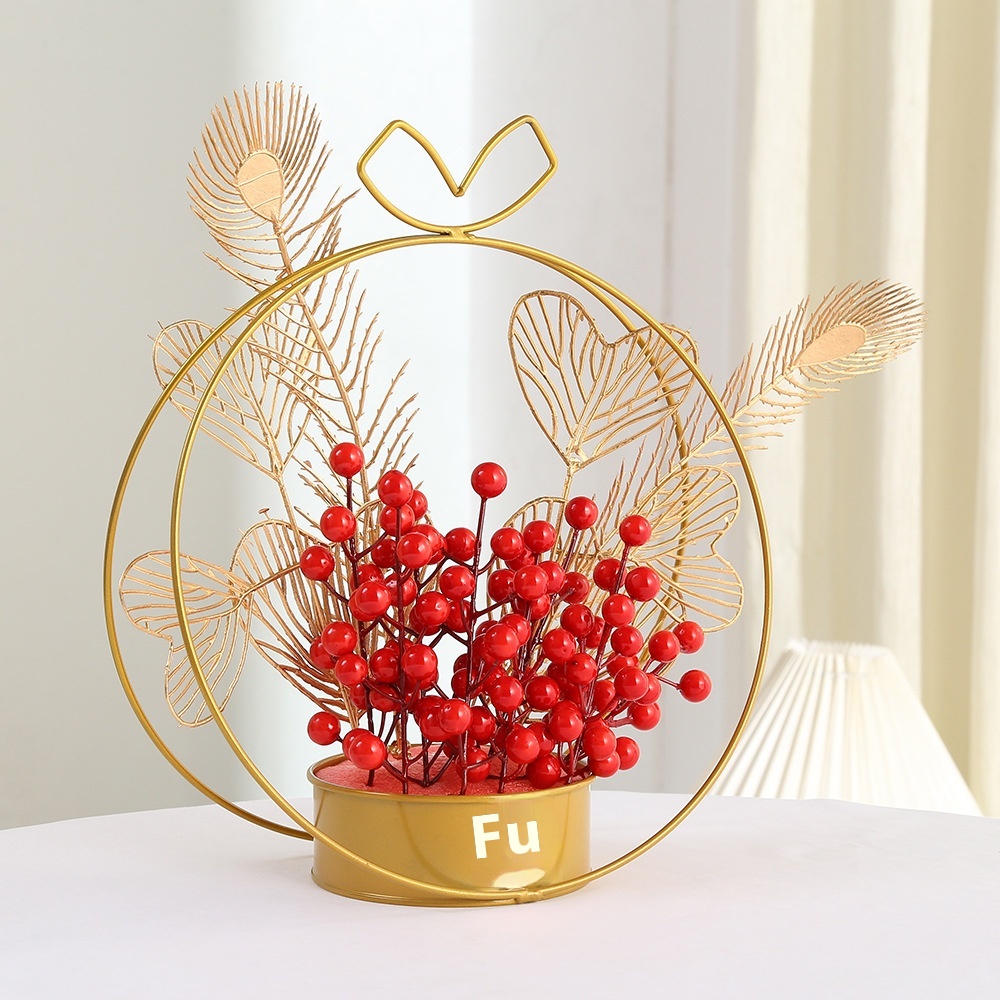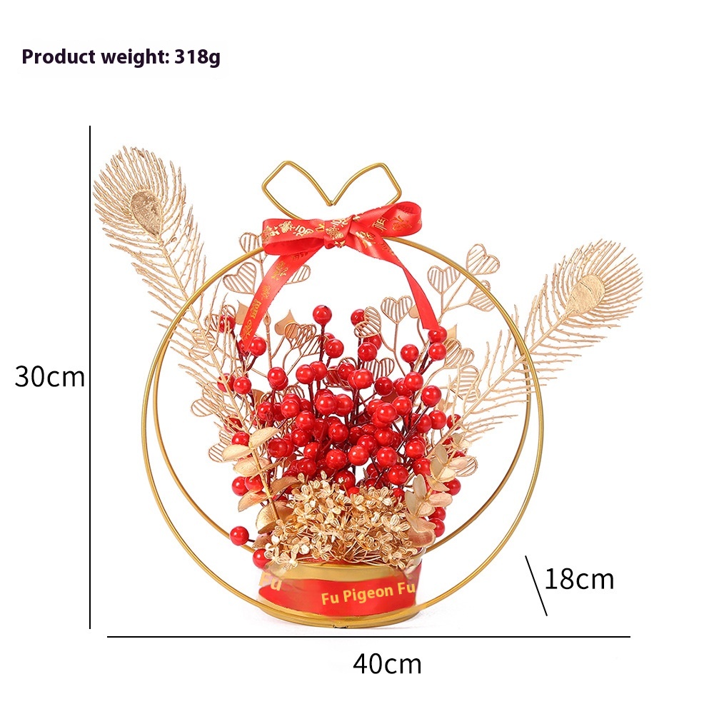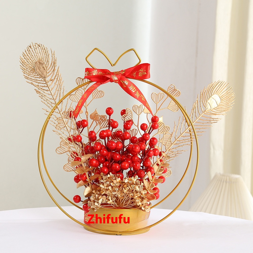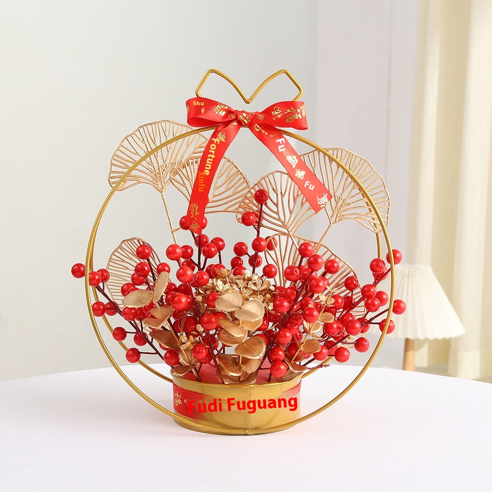 Year's Housewarming Fortune Fruit Artificial Flower Ornaments Spring Festival Wedding Iron Flower Basket Living Room Red Fruit Decorations