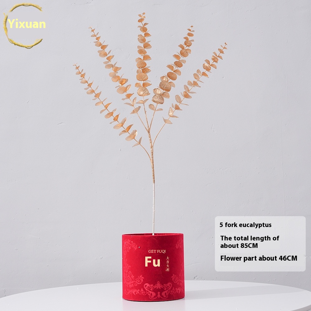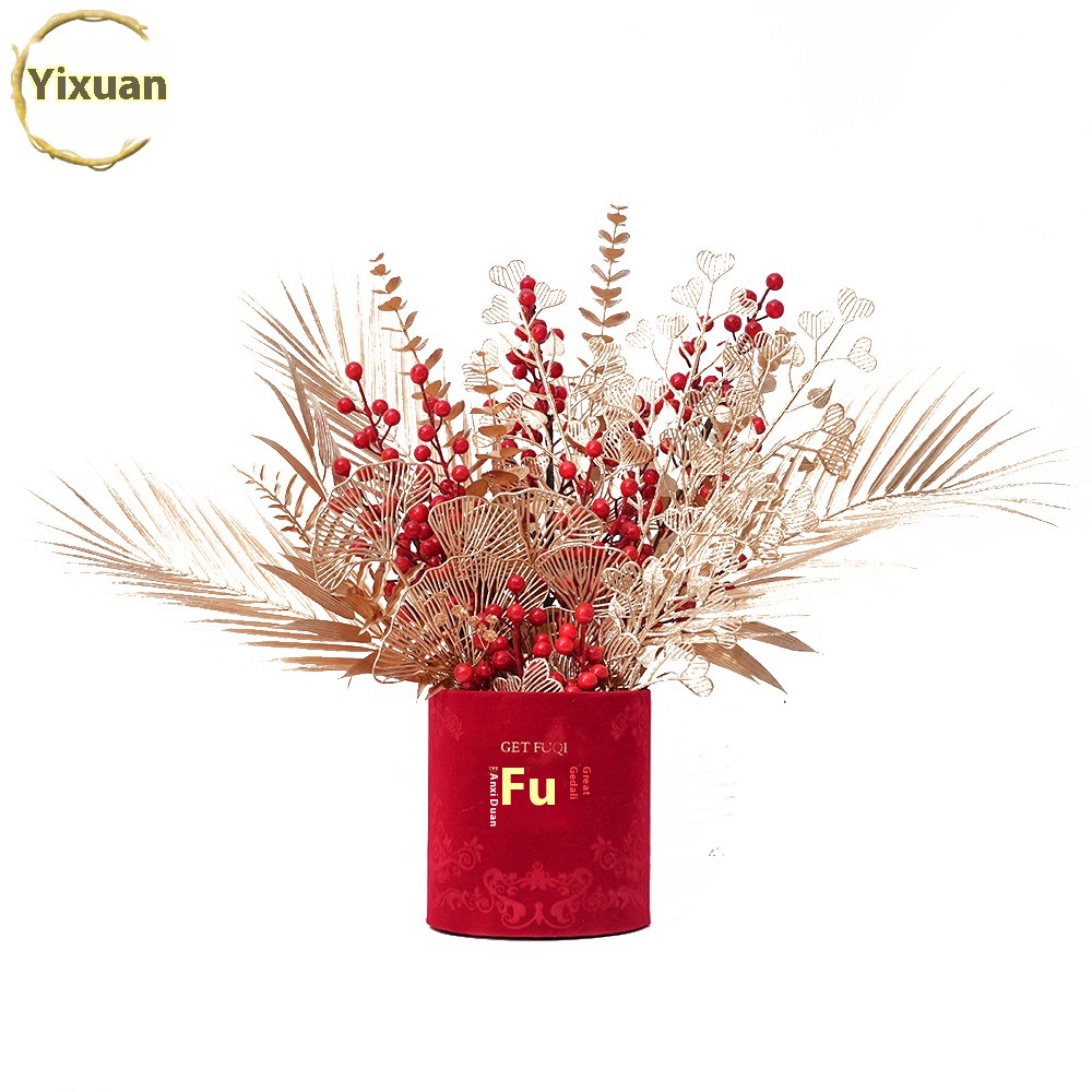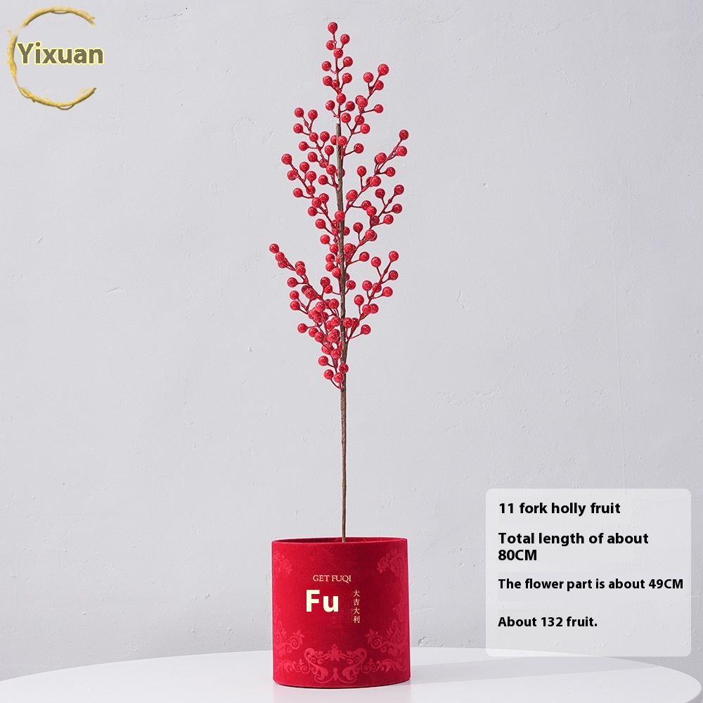 Artificial Flower Holly Fruit Fortune Fruit Year's Eve Flower Red Fruit Year's Decoration Fake Flower Material Golden Eucalyptus Small Fan Leaf
