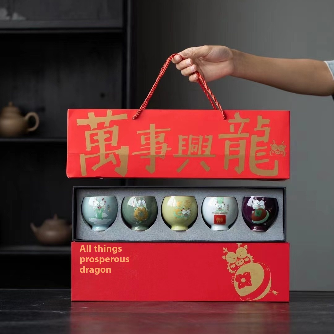Gift Tea Cup Host Cup Tea Bowl Ru Kiln Single Cup Tea Cup Kung Fu Tea Set Tea Cup Gift Box Ceramic Souvenir