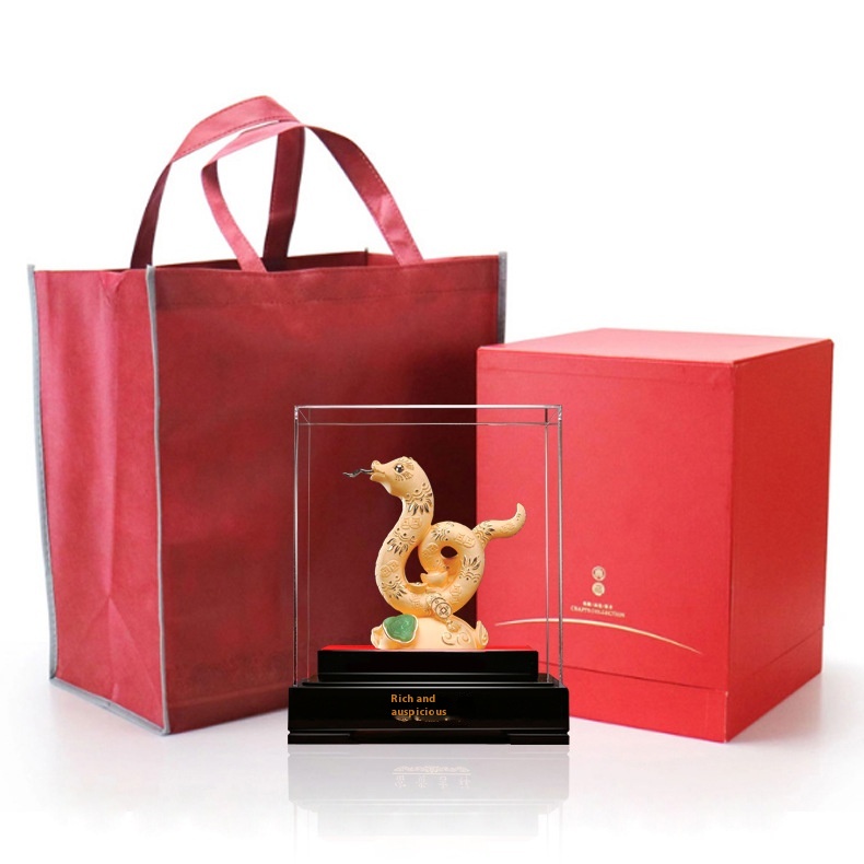 Golden Snake Velvet Sand Gold Zodiac Snake Crafts Ornaments Bankurance Business Start Red Snake Year Mascot Gift