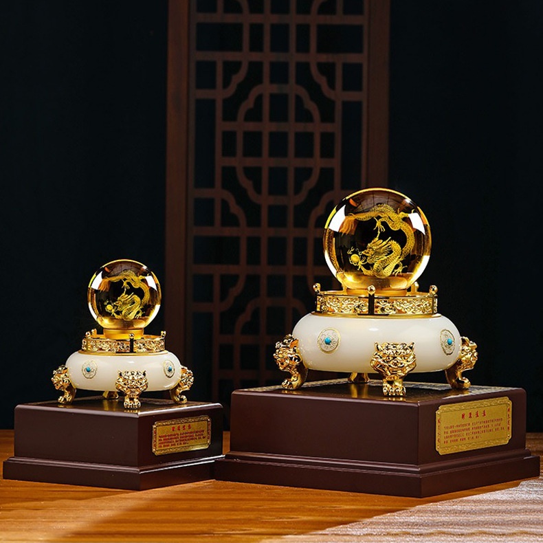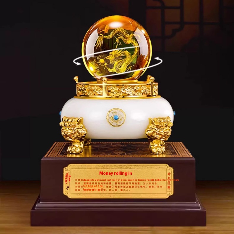 Dragon Turns The World Snake Year Treasure Bowl Ornaments White Jade Glass Opening Gift Office Living Room Housewarming Home Decoration