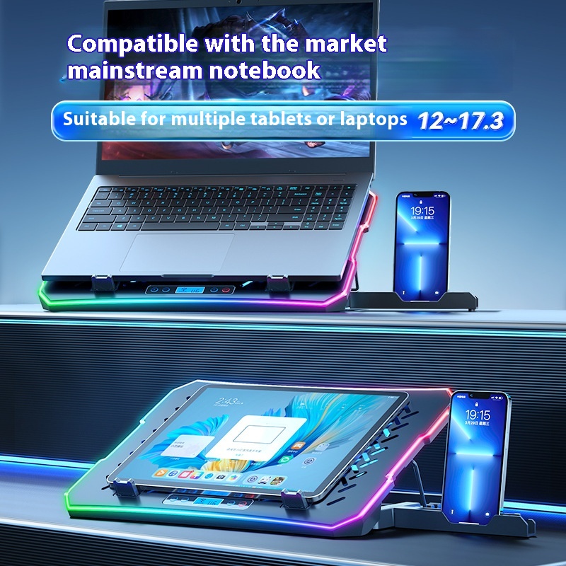 A12 Laptop Cooling Stand-Silent Ventilation Base With Phone Holder And Laptop Exhaust Fan