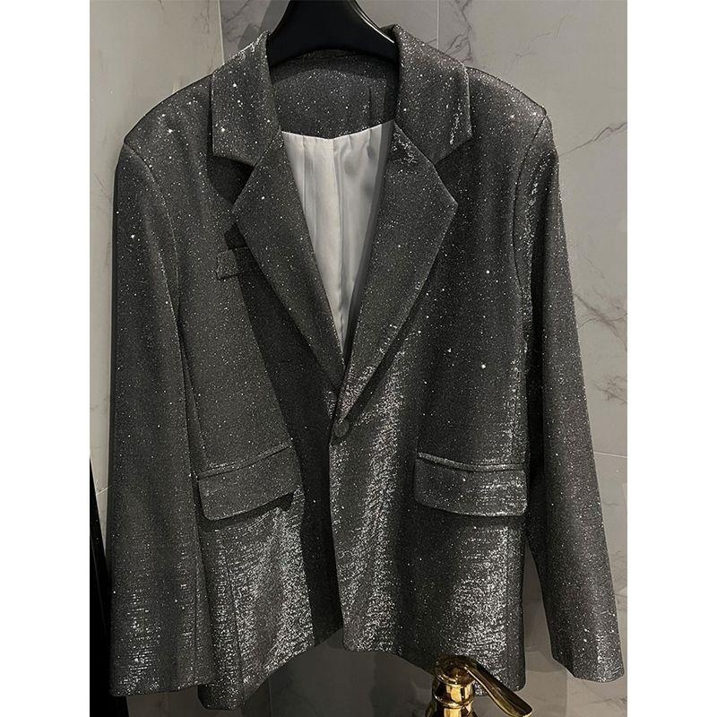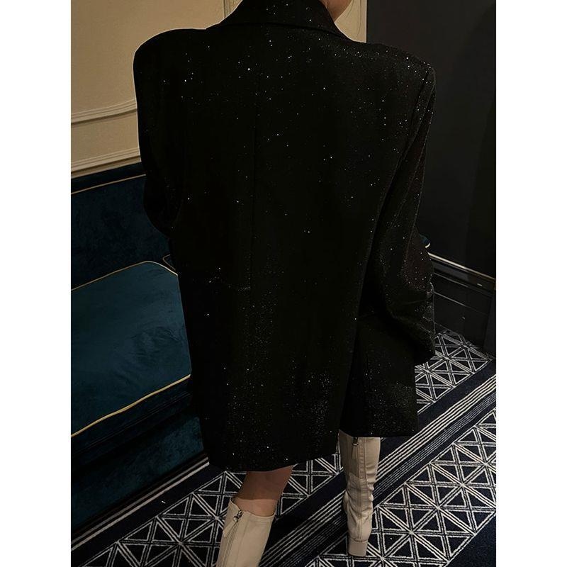 Chubby Girl Extra Large Size150kg European Station Autumn Women's Design Retro Sequin Suit Long Coat Women