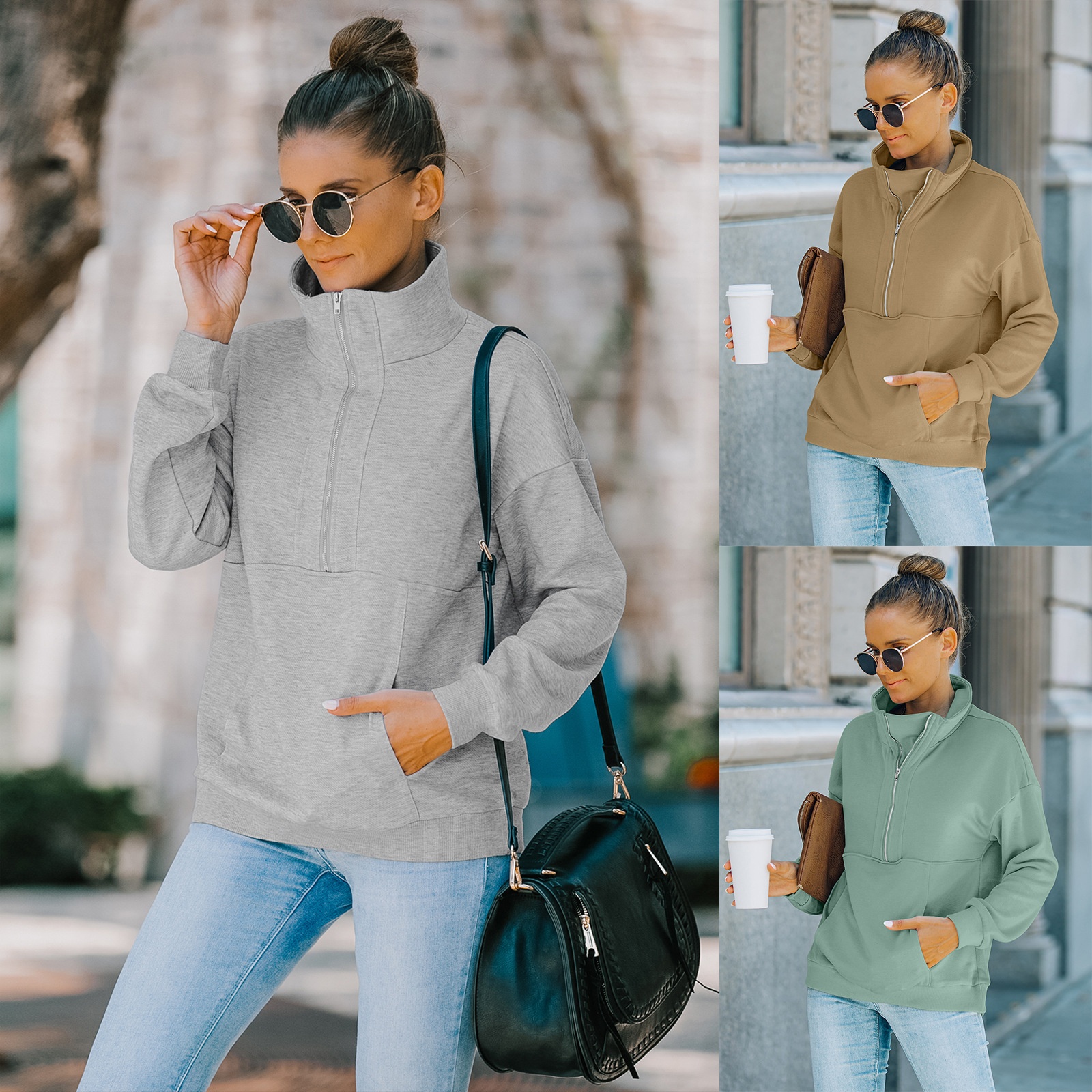 Hit European And American Women's Clothing Autumn And Winter Fashion Pullover Tops High Collar Loose Sweatshirts For Women