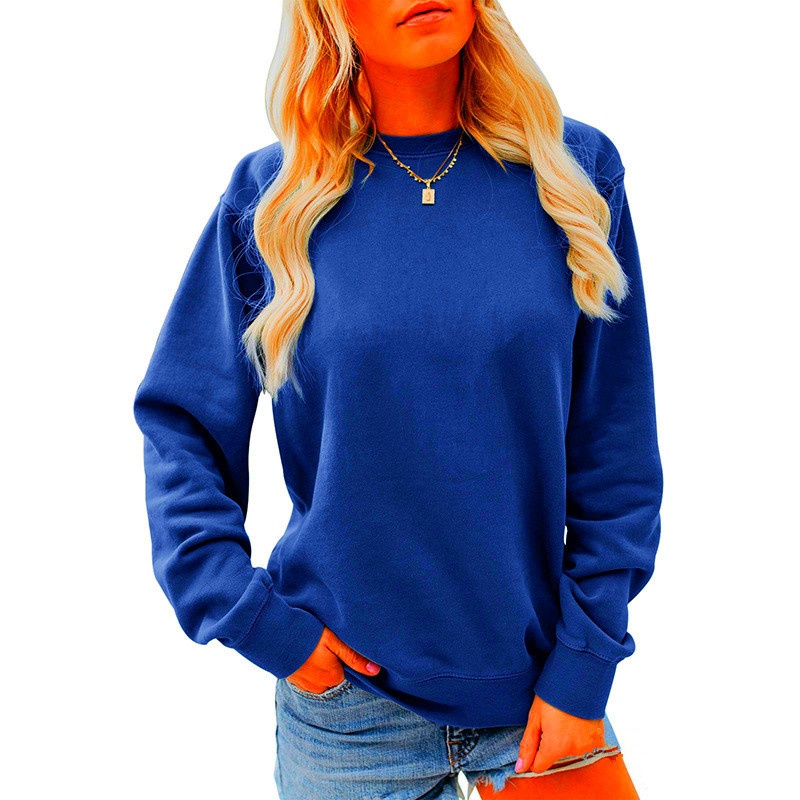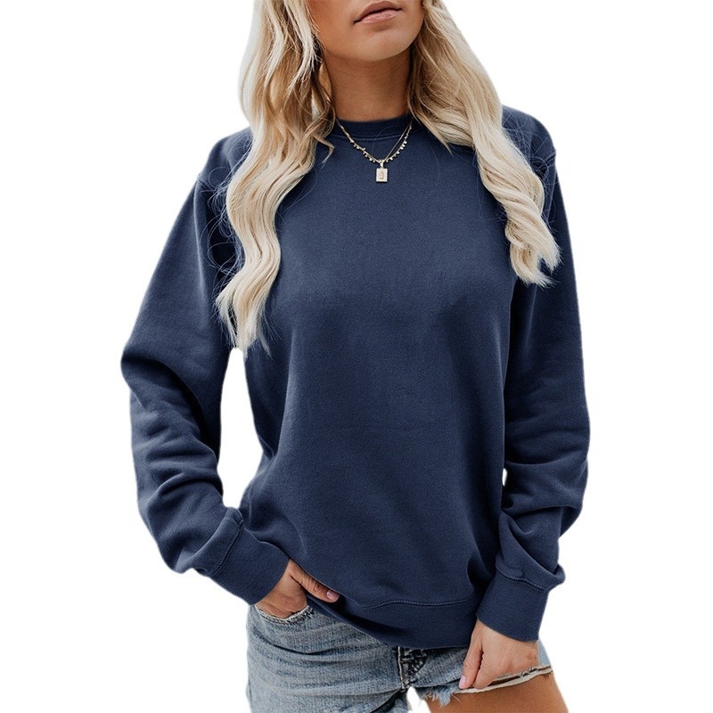 Foreign Trade Women's Round Neck Solid Color Long-sleeved Tops Autumn And Winter Casual Fashion Pullover Sweater