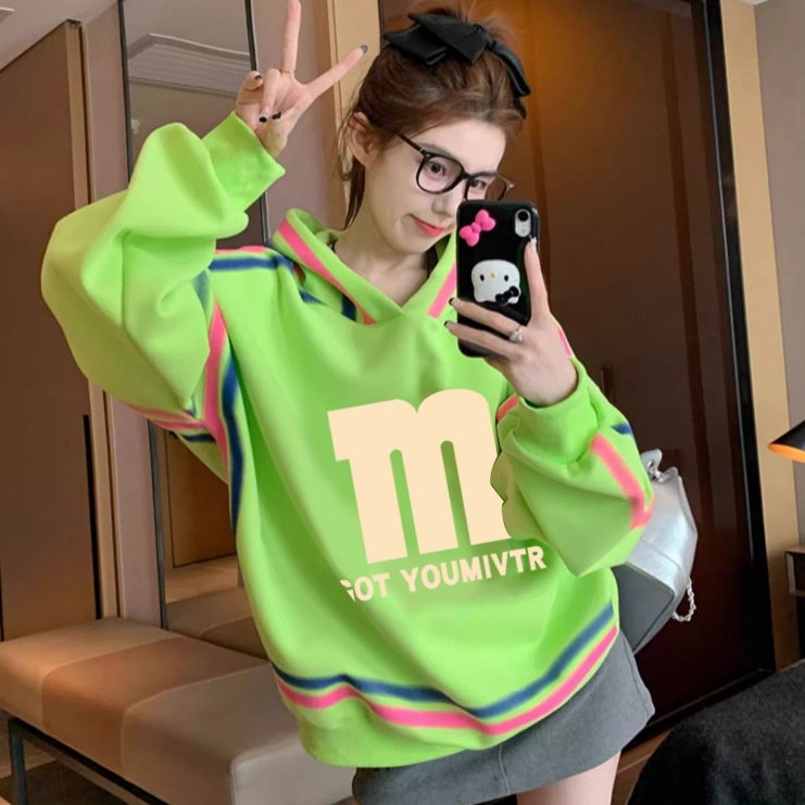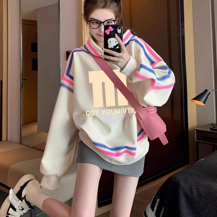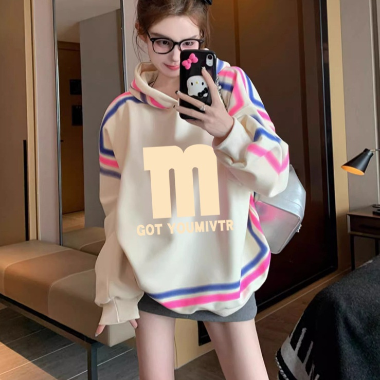 Style Letter Printed Hooded Sweatshirt For Women With Personalized Line Stitching Design Loose Tops For Outer Wear