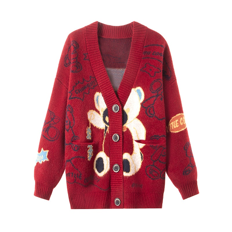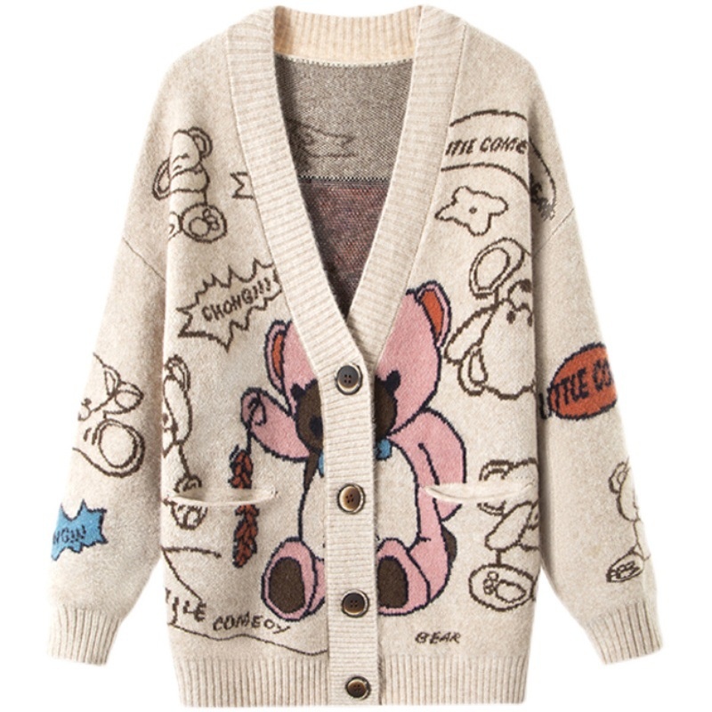 Jacquard Sweater Knit Cardigan-Fashionable Cartoon Bear Jacket