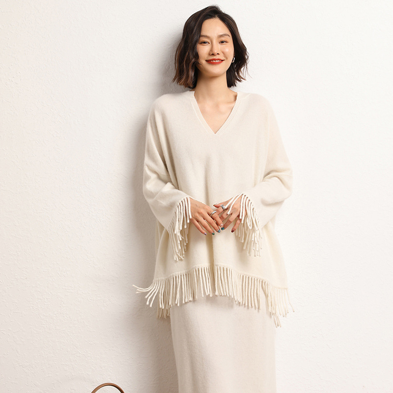 V-neck Pullover Loose Knitted Top Short Fashion Tassel Knitted Sweater