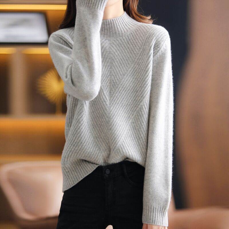 Solid Color Sweater Versatile Thick Outerwear Loose Knitted Top
