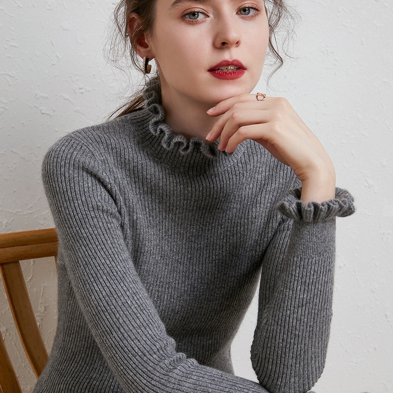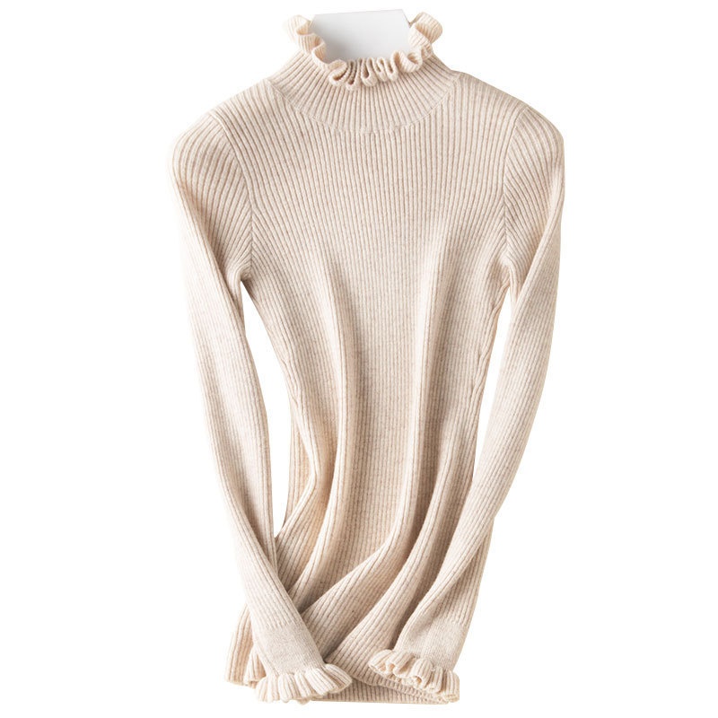 Fungus Edge Collar Bottoming Pullover Slim Tight Western Style Sweater