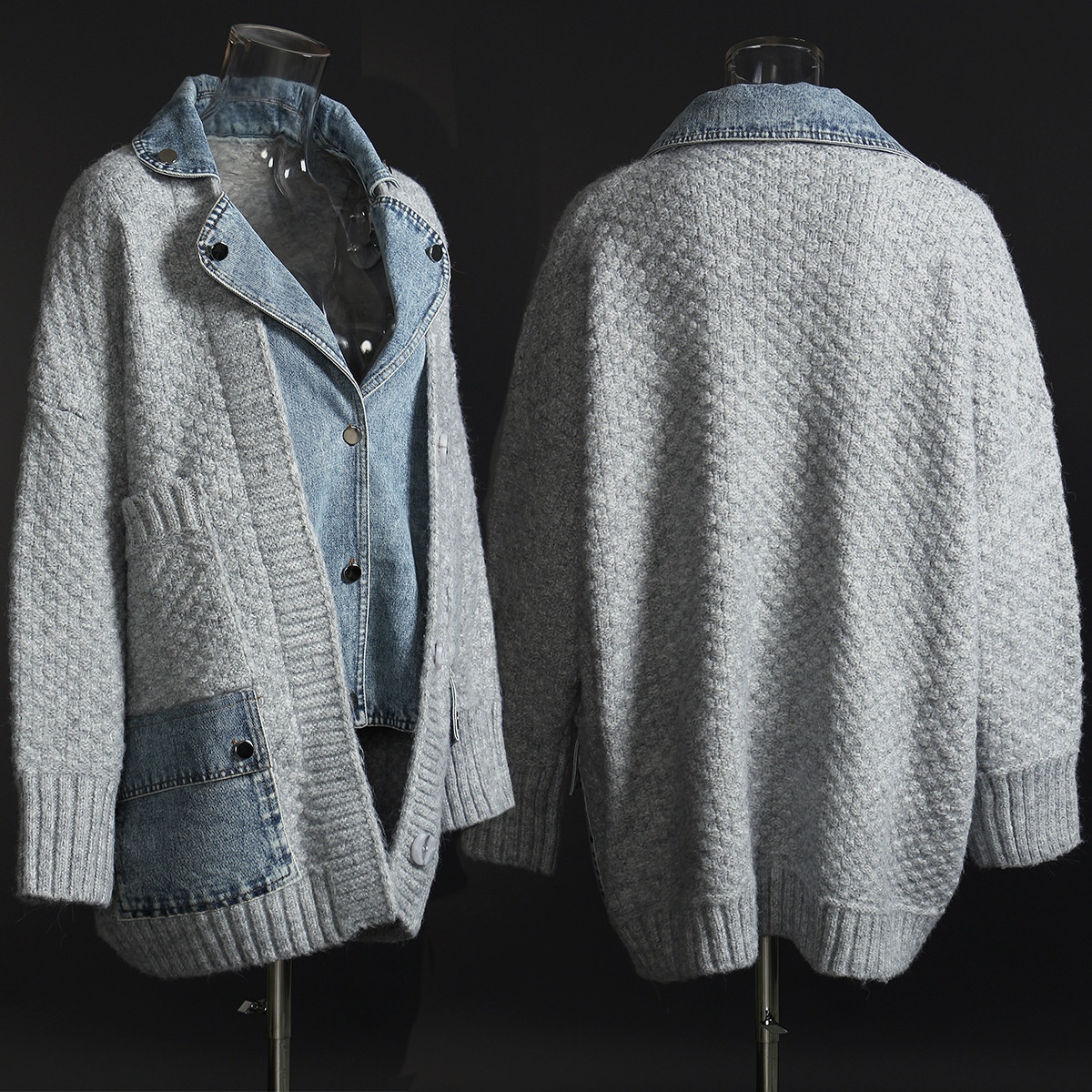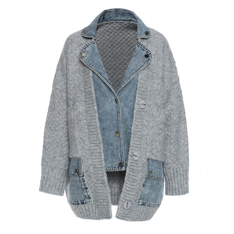 Fake Street Loose Sweater SplicedDenim Shirt Thickened Jacket Two Pieces