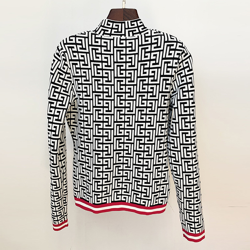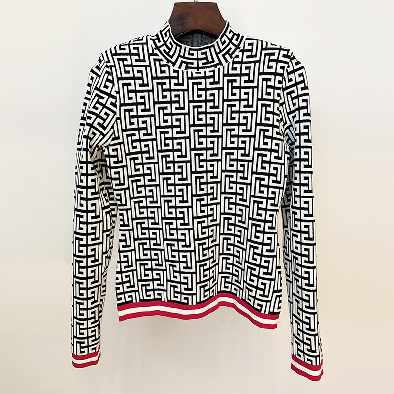 Fashion Maze Figure Thread Trimmed Half High Neck Pullover Sweater Knitted Shirt