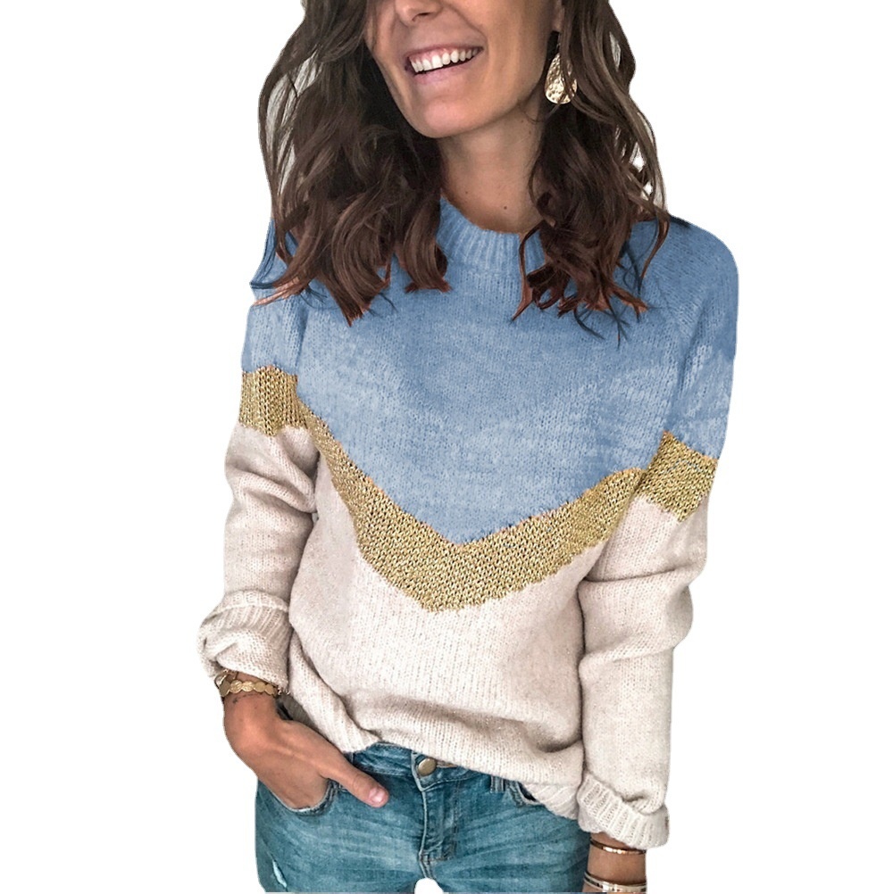 Contrast Stitching Sweater Pullover Round Neck Raglan Sleeve Sweater