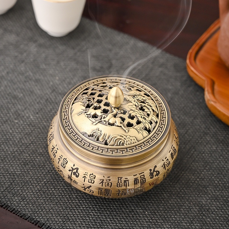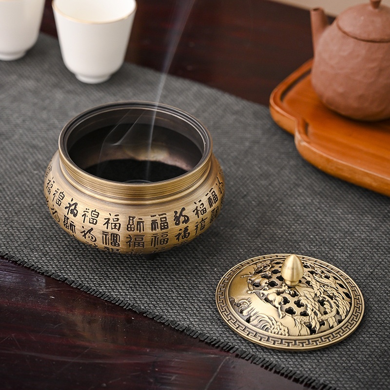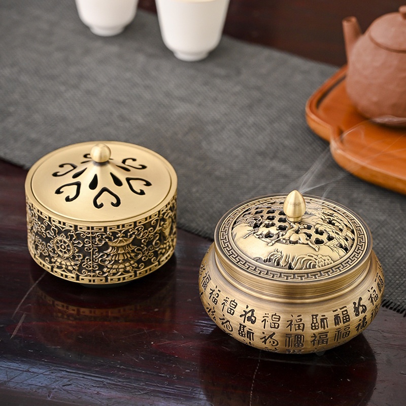 Pure Copper Eight Auspicious Incense Burner Household Sandalwood Incense Coil Indoor Tibetan Incense Burner Agarwood Creative Retro Ornaments Tea Ceremony