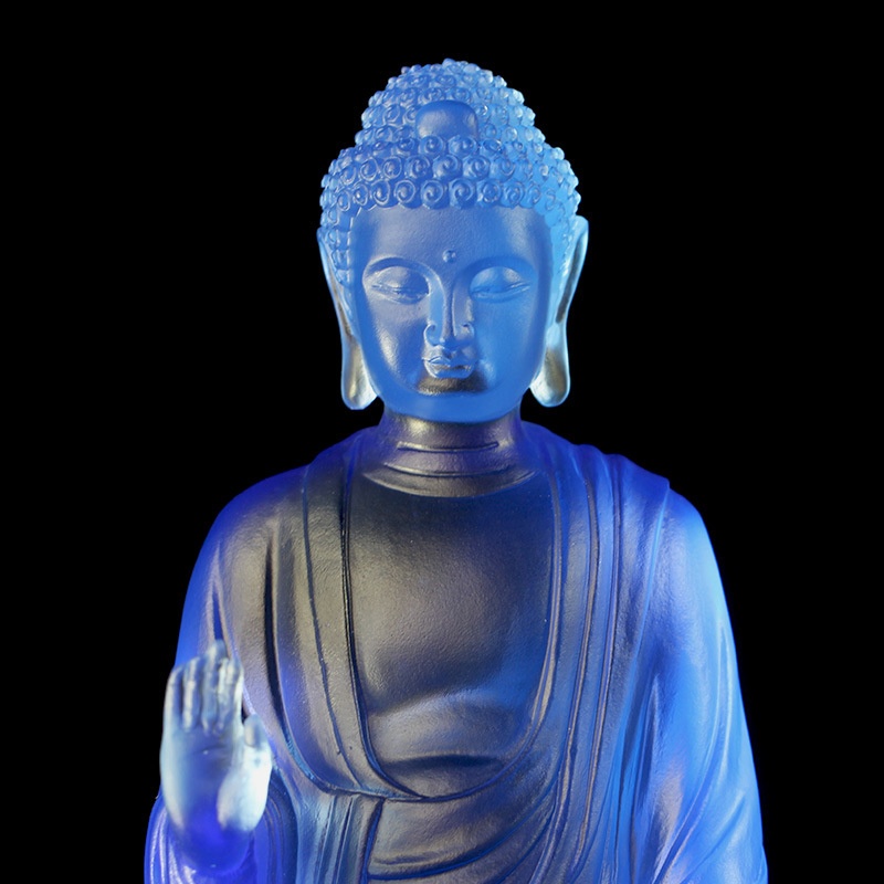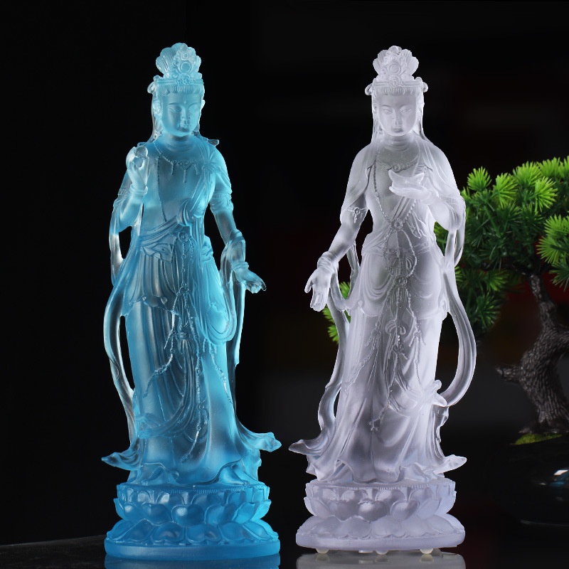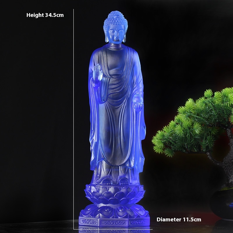 Glass Eastern Three Saints Standing Statue Medicine Buddha Statue Sun Moon Light Guanyin Bodhisattva Ornaments Home Living Room Buddhist Hall Placement