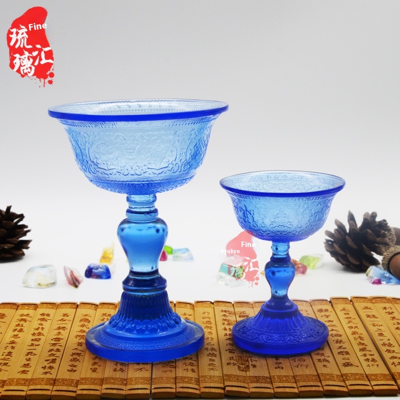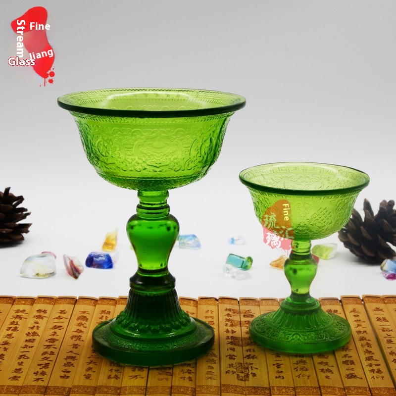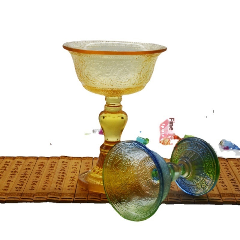 Ancient Glass Buddhist Supplies Glass Butter Lamp Holder Eight Auspicious Offering Cup Buddha Offering Bowl Offering Cup