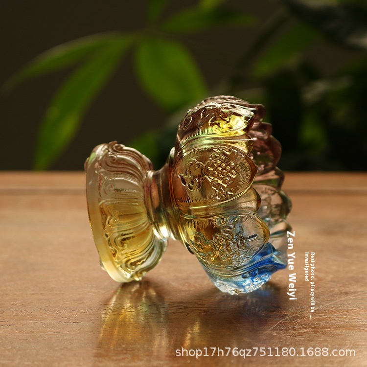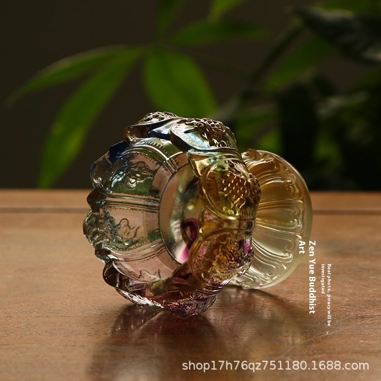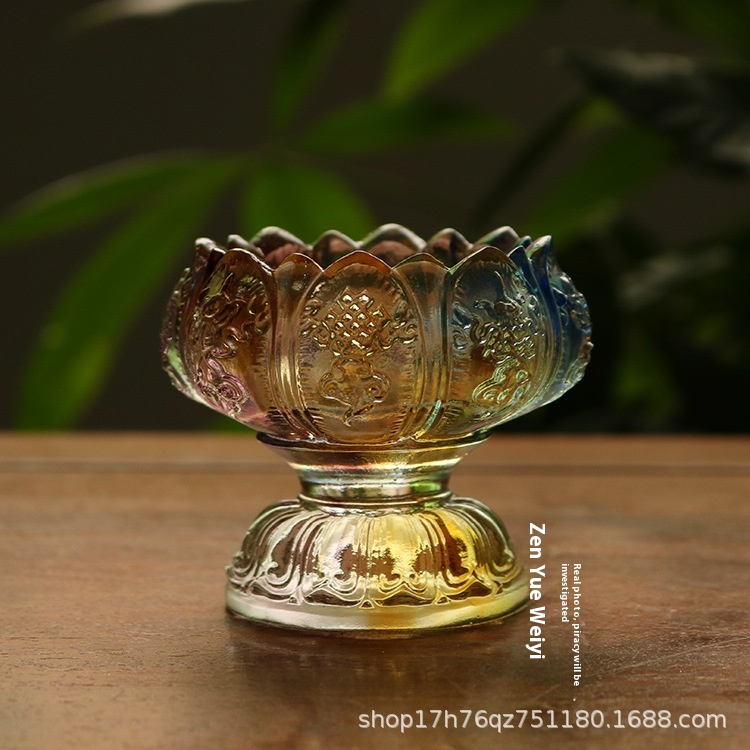 Glass Lotus Eight Auspicious Candlestick Buddhist Supplies Ghee Lamp Holder Small Bowl Color