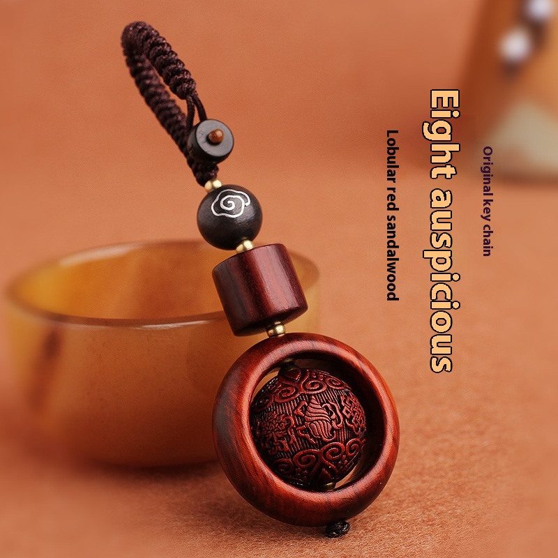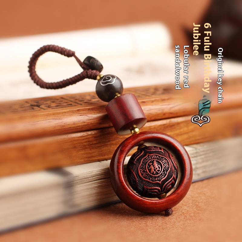 Car Keychain Fashion Creative Pendant Bead Wheel Rosewood Carving Pendant Rope Accessories Braided Lanyard