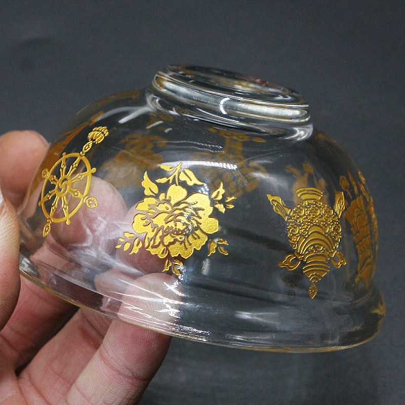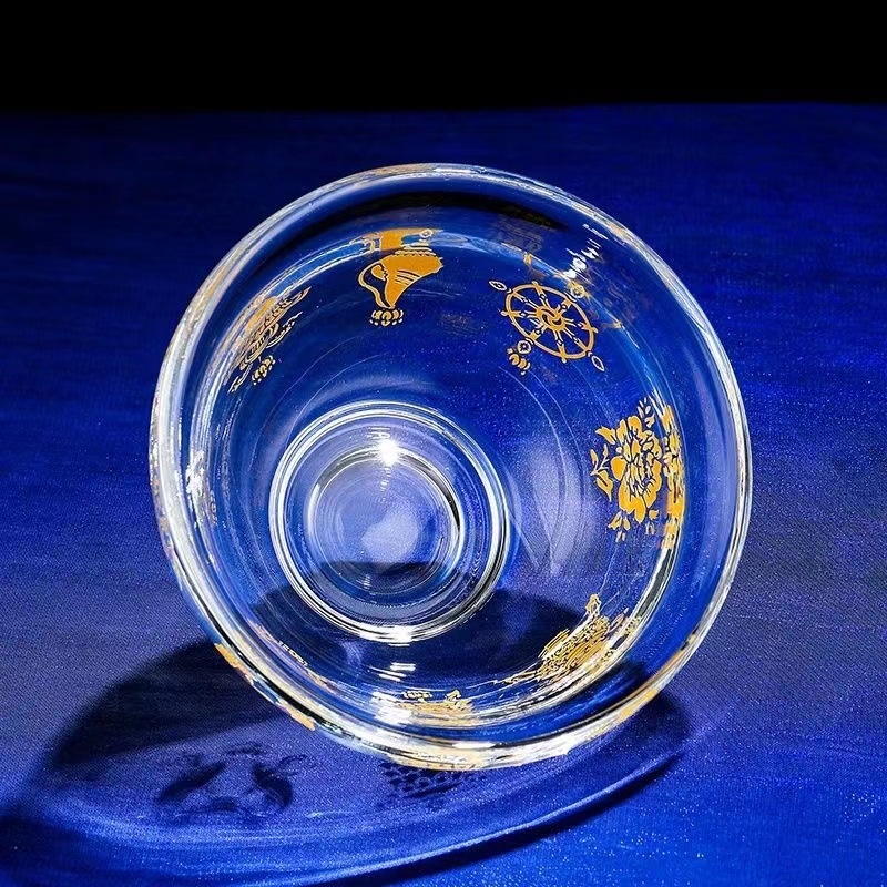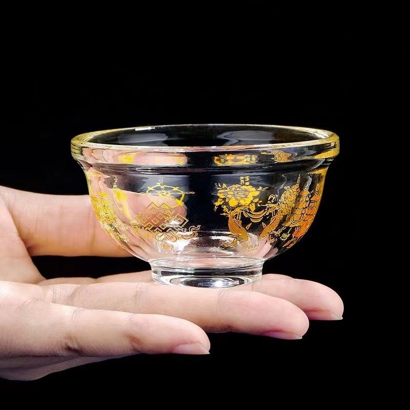 White Crystal Water Cup Bowl Cup Eight Auspicious Gold-painted Water Cup Transparent Crystal Water Bowl Eight Bowl