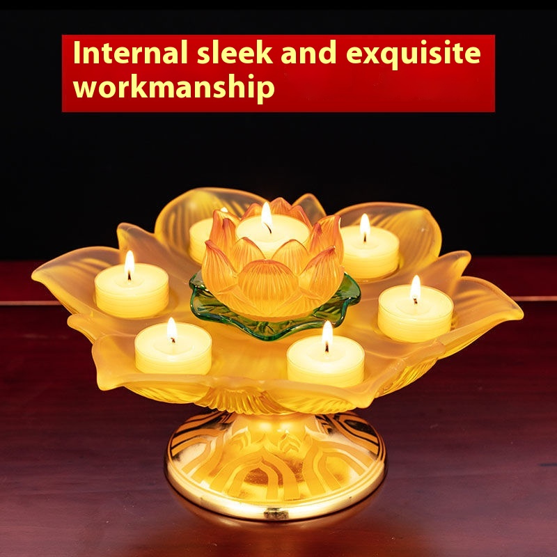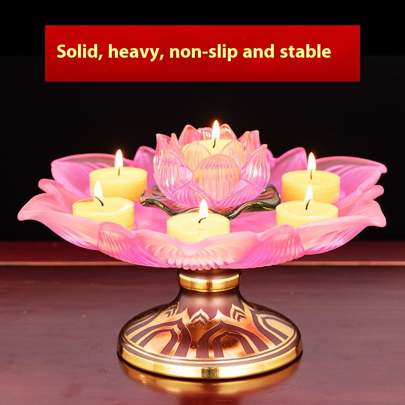 Colorful Glazed Butter Lamp Holder Household Eight Auspicious Lotus Lamp Long-burning Lamp Base Ornaments Candle Stand Lamp Holder