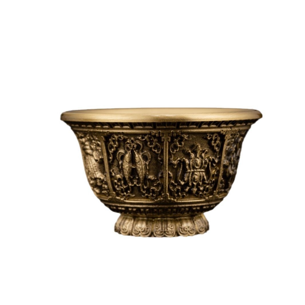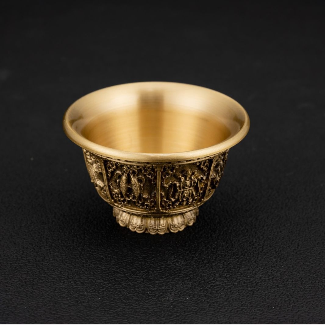 Pure Copper Eight Treasure Water Bowl Eight Auspicious Eight Offering Cup Bowl Water Cup Water Supplies For Buddha Offering Holy Water Cup Brass Tibetan