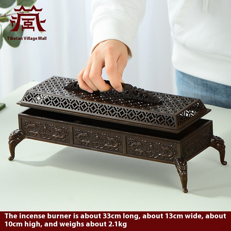 Foyuanhui Copper Antique Wire Incense Burner Home Indoor Worship Buddha Double Dragon Play Pearl Tibetan Lying Incense Burner