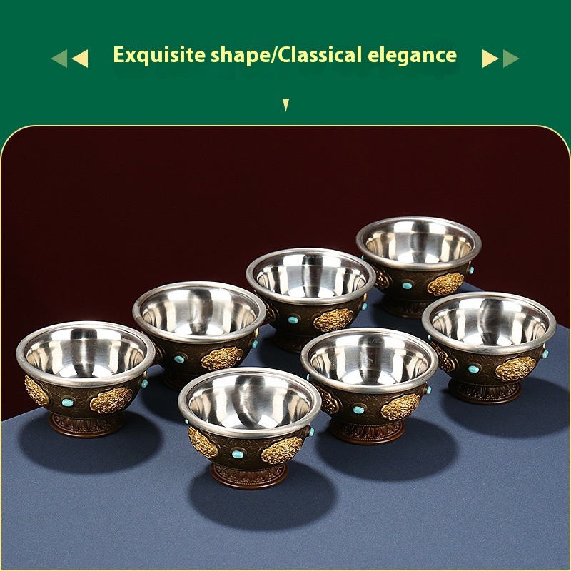 Home Decoration Ornaments Huibao Eight Auspicious Water Cup Stainless Steel Buddha Water Bowl Desktop Ornaments Office Goods