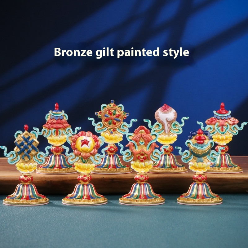 Tibetan Ethnic Style Eight Auspicious Ornaments Copper Gilded Home Office Eight Treasures Home Use Desktop Buddha Eight Offerings