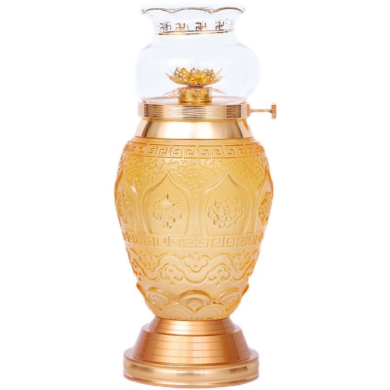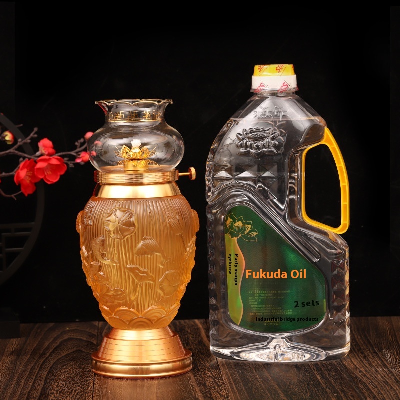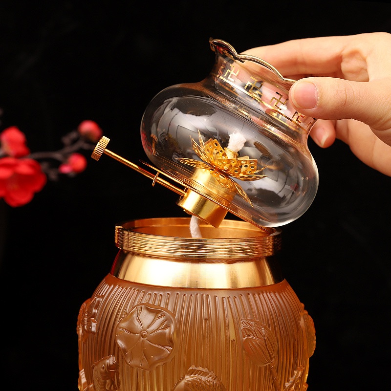 Glass Dimming Lamp Brass Lotus Lamp For Buddha Liquid Butter Lamp Lamp Color Eight Auspicious Long-bright Lamp Buddha