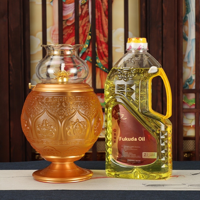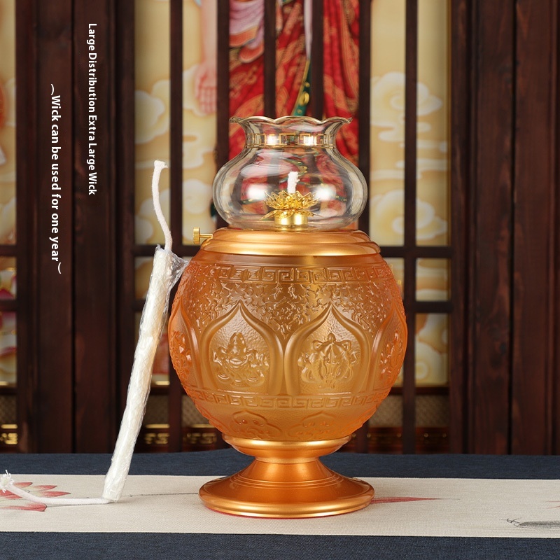 Buddhist Supplies Brass Glass Buddha Lamp Windproof Lotus Oil Lamp Home Buddha Worship Butter Lamp Long-lasting Lamp