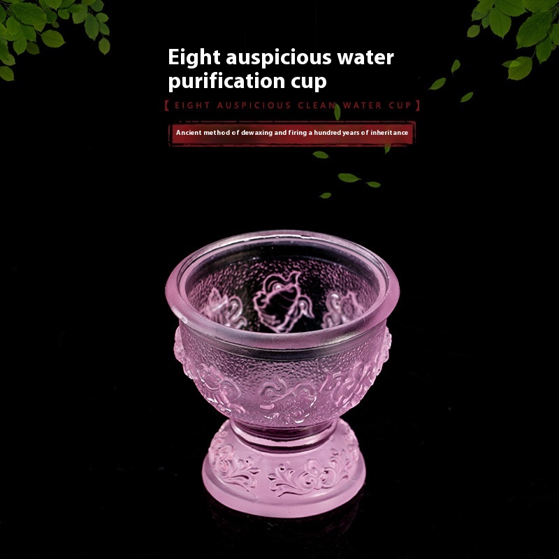 Glass Eight Auspicious Water Cup Chinese Zen Templetrument Glass Water Purifier Cup Buddha Front Ornament Seven Colors Optional