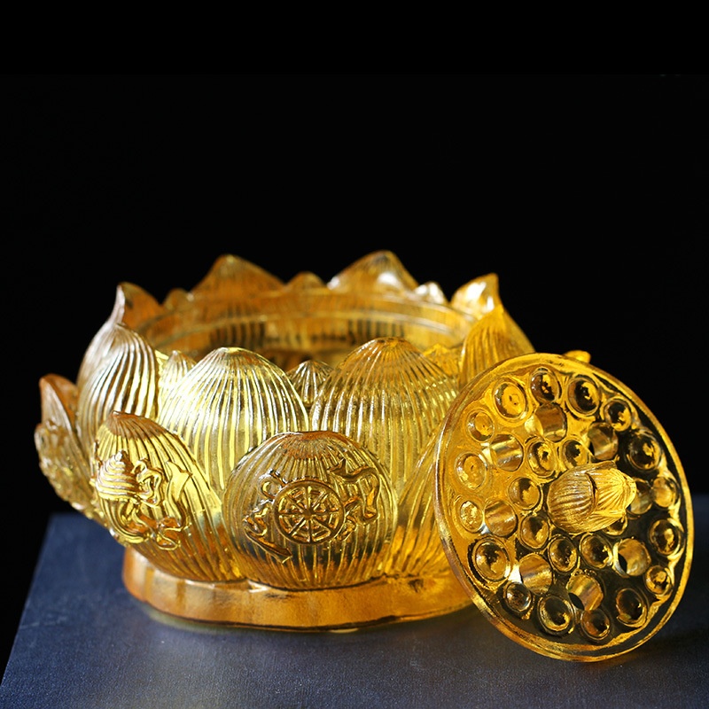Glass Eight Auspicious Incense Burner Lotus Incense Holder Incense Holder Decoration Home Living Room Buddhist Hall Tea Room Household Buddhist Supplies