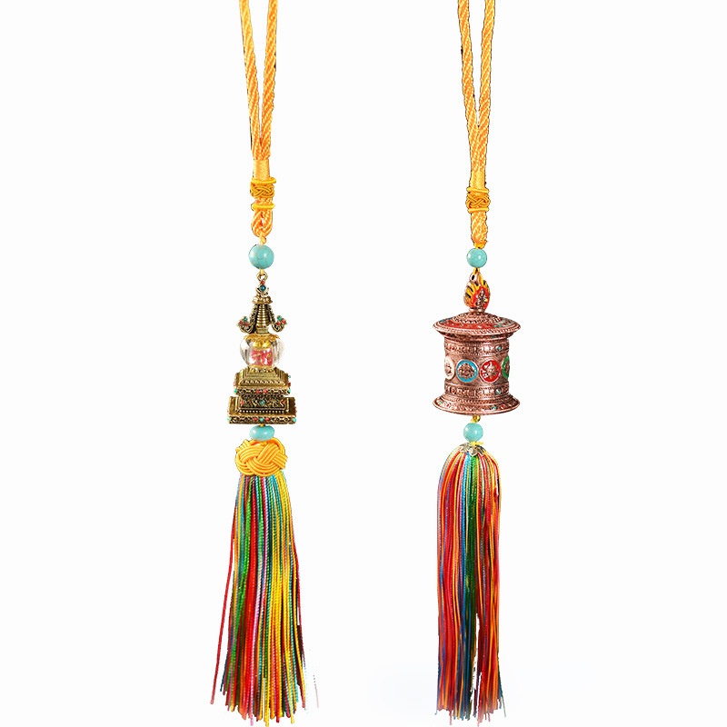 Buddha Yuan Hui Tibetan Buddhist Articles Tibetan Jewelry Car Hanging Turn Gold Wheel Painted Eight Auspicious Colorful Tassel Car Hanging