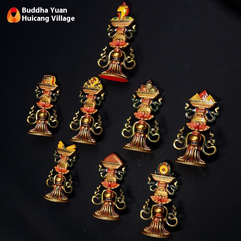 Buddha Yuan Hui Eight Auspicious Ornaments Home Buddha Suit Bronze Painted Auspicious Eight Treasures Ornaments Buddhist Articles Eight Auspicious Things