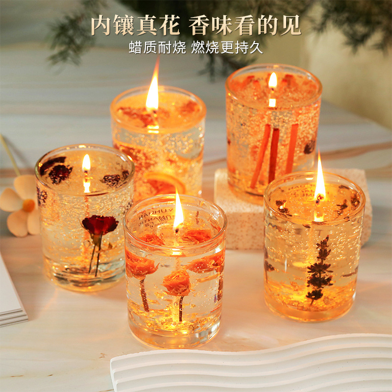 Internet Celebrity Jelly Aromatherapy Candle Romantic Creative Gold Foil Real Flower Plant Essential Oil Fragrance Handmade Diy Gift