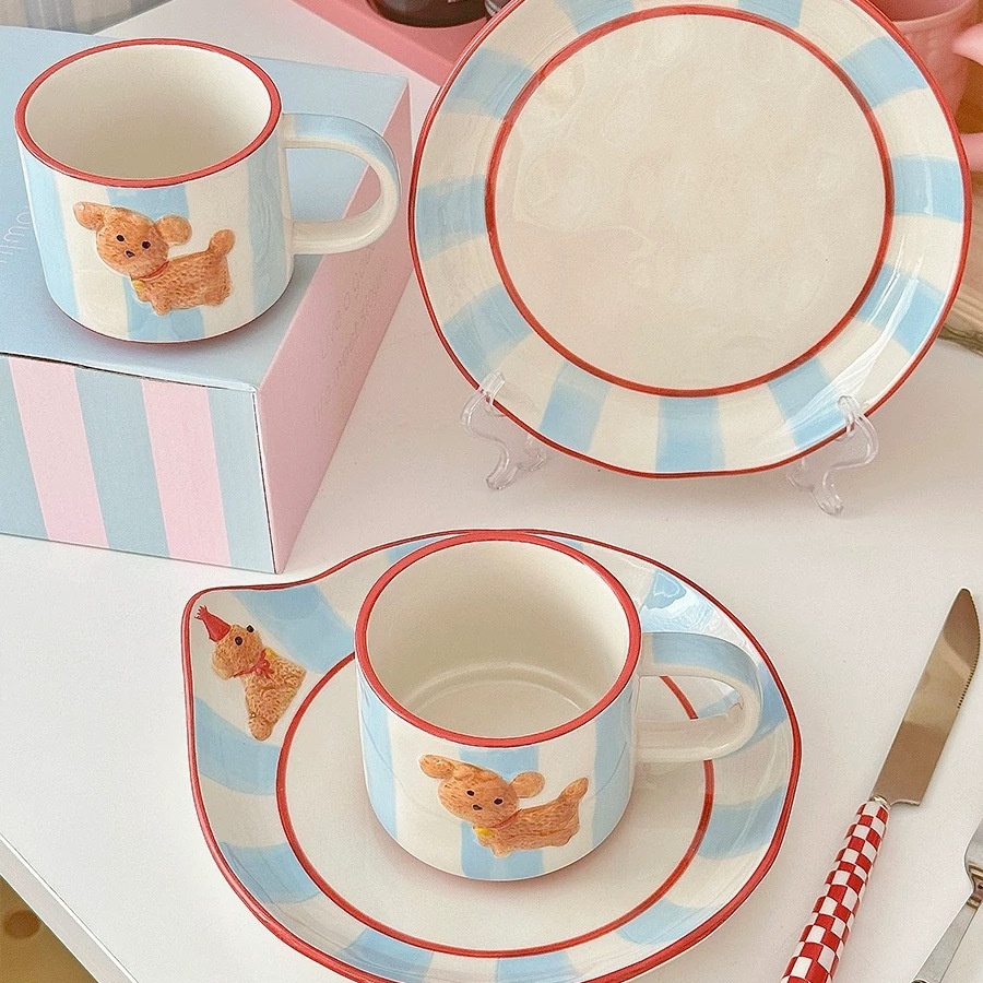 Korea Cute Hand-painted Underglaze Puppy Mark Water Cup Breakfast Plate Ceramic Tableware