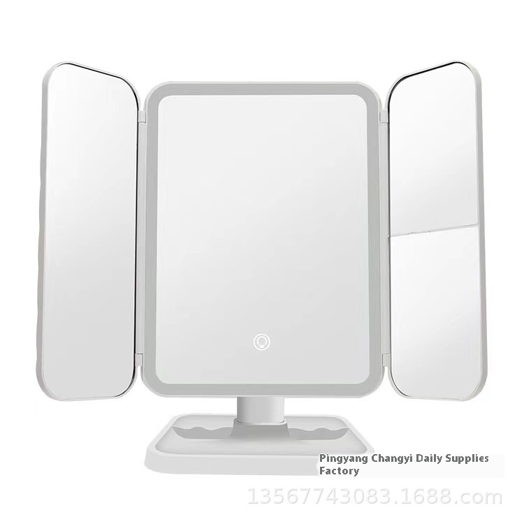 LEDMakeup Mirror Table Lamp Three-sided Folding Touch-sensitive Fill Light Mirror Makeup Mirror With Light Charging