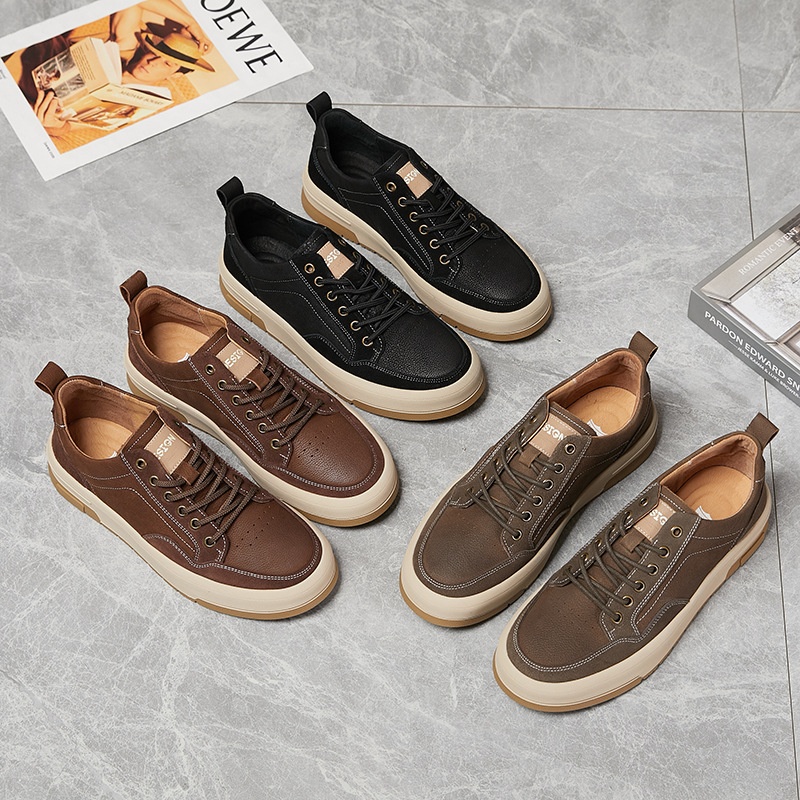 Fashion Frosted Cowhide Men's Strap Comfortable Platform Shoes Spring Casual Men's Leather Shoes