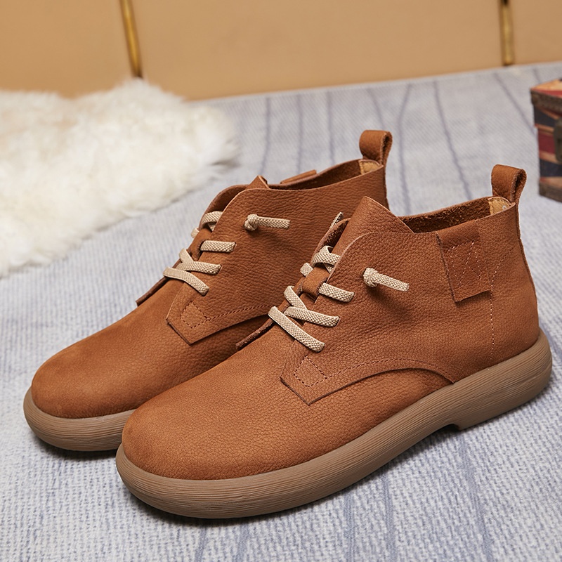 Autumn And Winter Frosted Cowhide Strap Casual Comfortable Non-slip Big Head Men's Shoes Leather Thick Bottom Short Boots