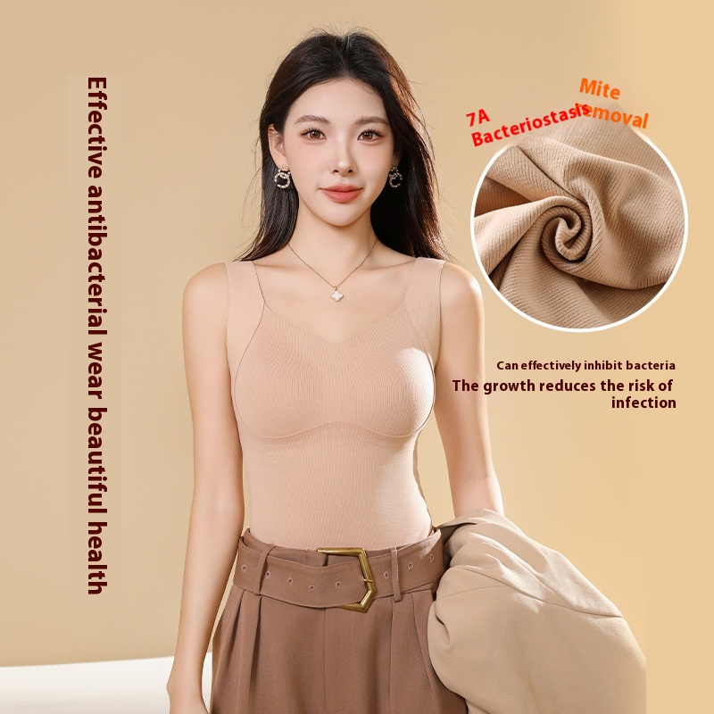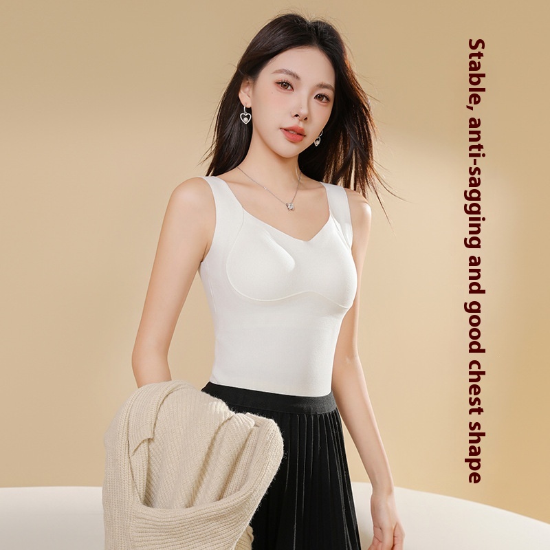 Autumn And Winter Coconut Fragrance Seamless Warm Vest Fixed Cup Gathered Lifting Bra-free Heating Bottoming Top For Women